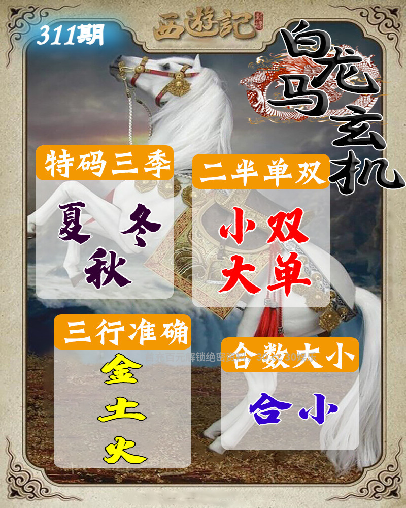 311期:七肖中特☛虎鸡猴龙羊兔☚开:蛇37准